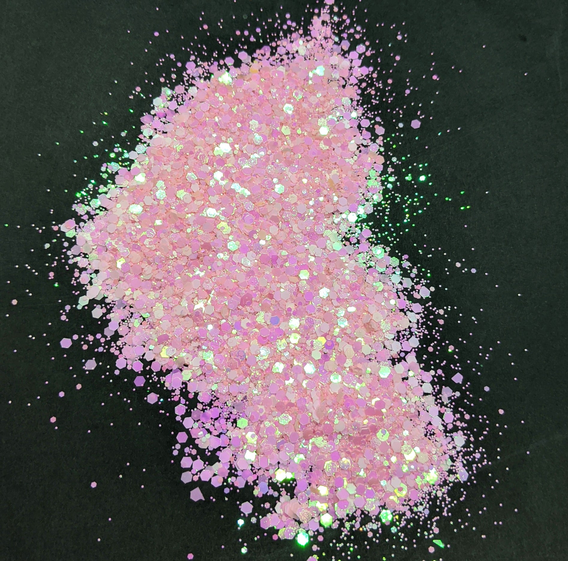 Bazooka is an opaque pink colorshift fine/chunky mix.