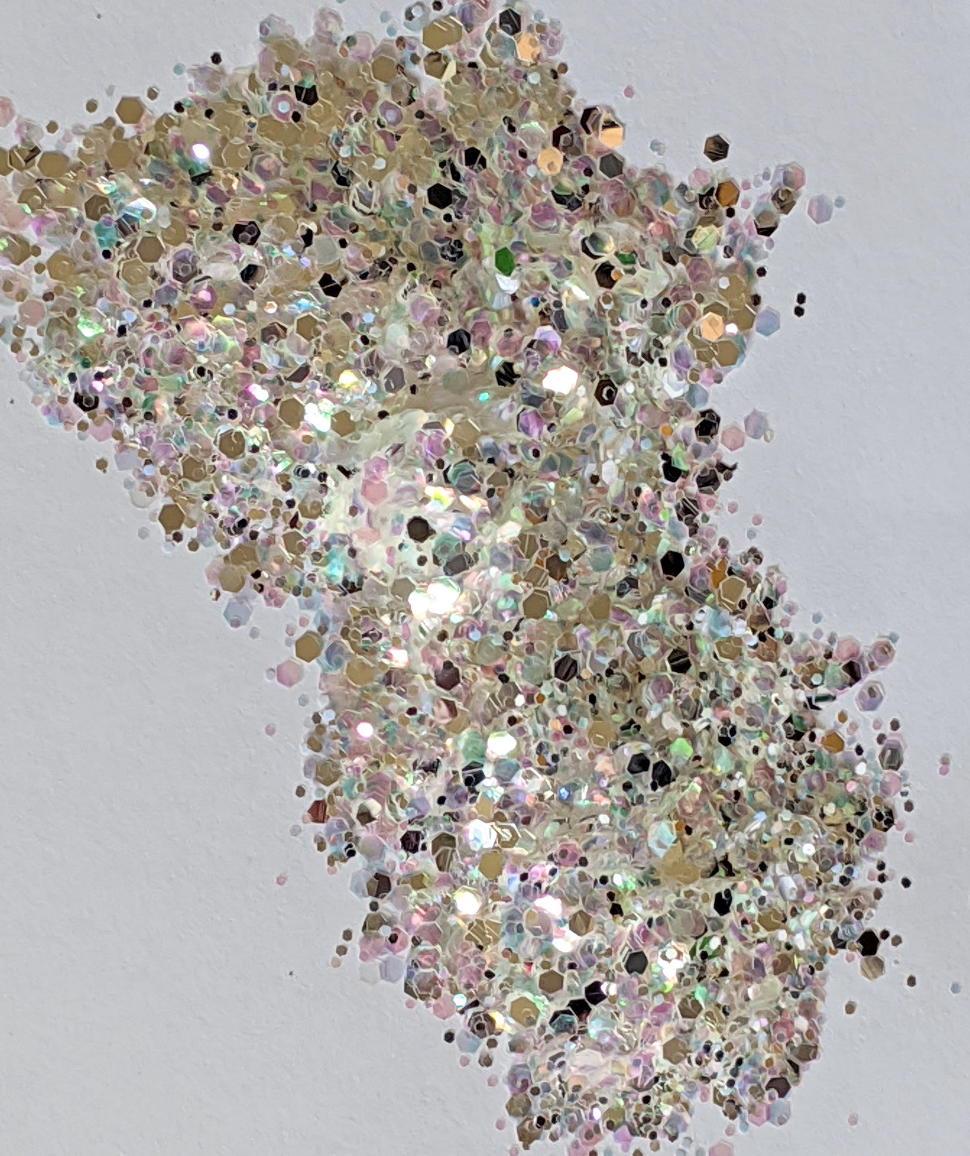 A fine/chunky mix of mirror pieces and opal chunkies.