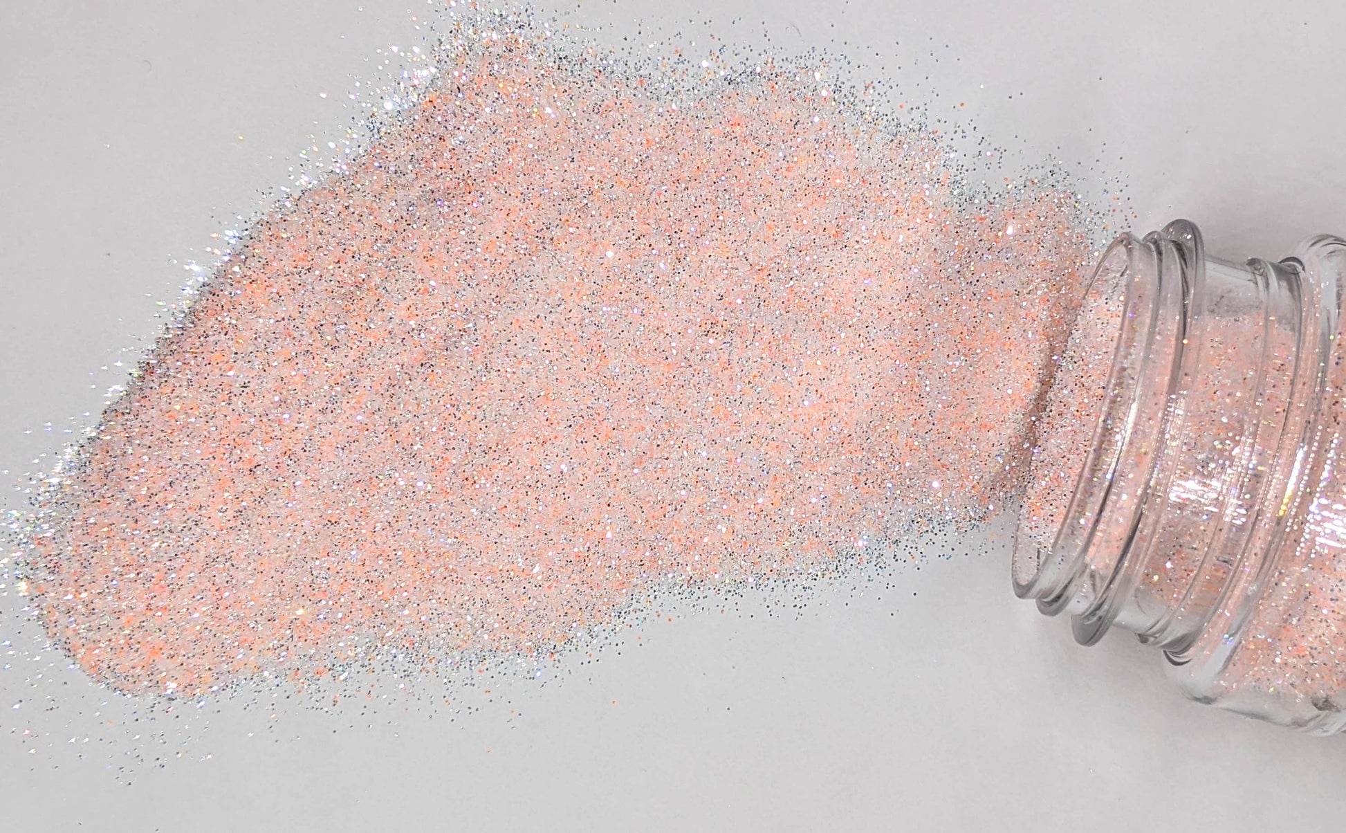 A fine cut pastel orange with fine pieces of silver for added sparkle