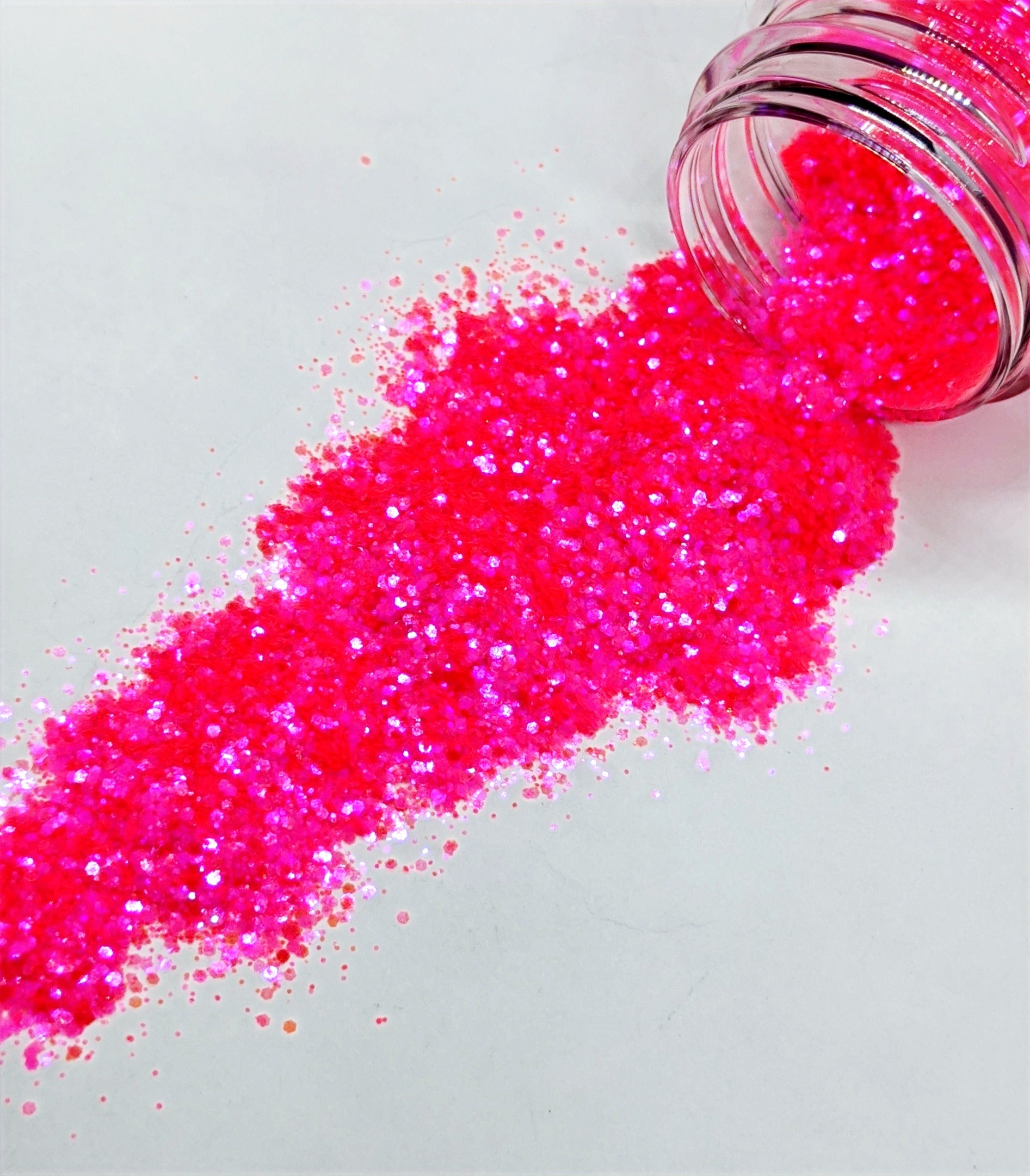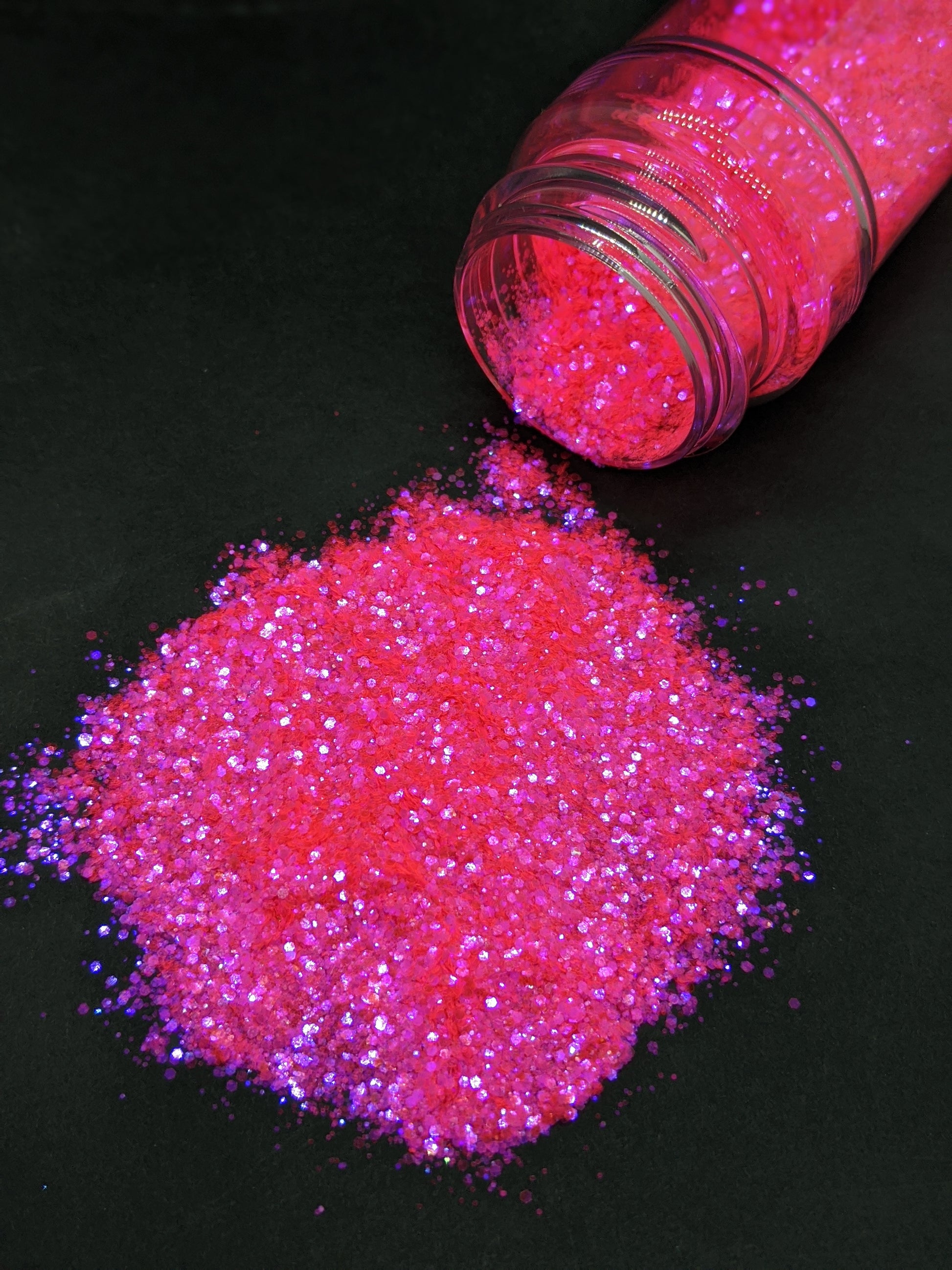GoGo Cosmo is a colorshift pink/purple irredescent fine/chunky mix.